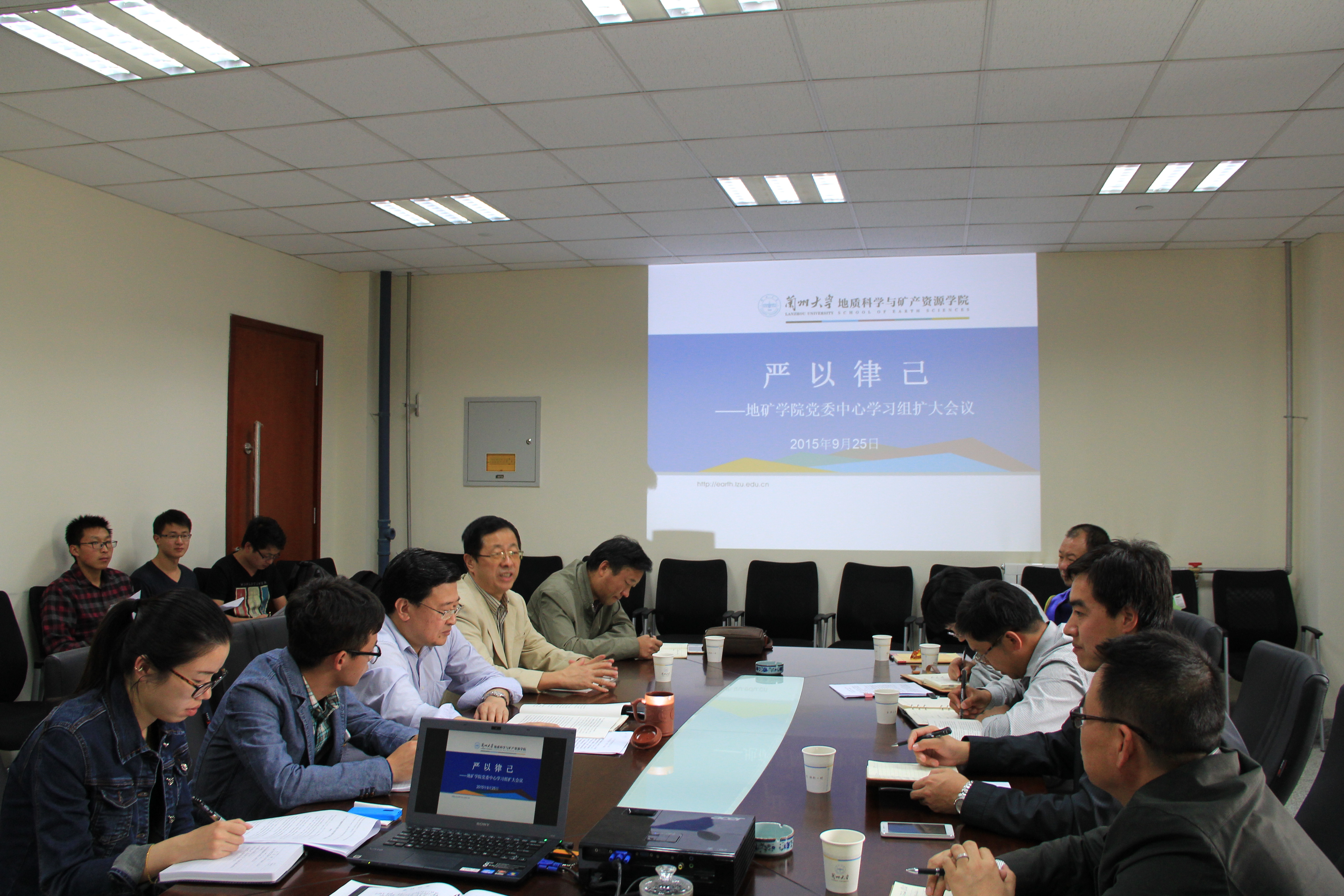 9月25日下午,地质科学与矿产资源学院在观云楼1305会议室召开“严以律己”专题党委中心学习组扩大会议。院党委书记潘福生、党委副书记豆永杰、党委委员、研究所所长、党务人员以及各党支部支部书记参加了会议。督导组副组长王德忠莅临指导并提出了有关具体要求,会议由潘福生主持。