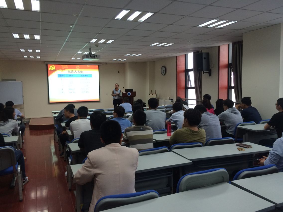 会议由党支部书记潘振杰主持,共有研究生党支部32名正式党员参加会议。会议宣布了新一届支部委员候选人名单,采取无记名投票方式,产生了新一届支部委员会。选举马俊为支部书记,杜雪亮为支部副书记,罗新蓉为宣传委员,姚丽洁为组织委员。