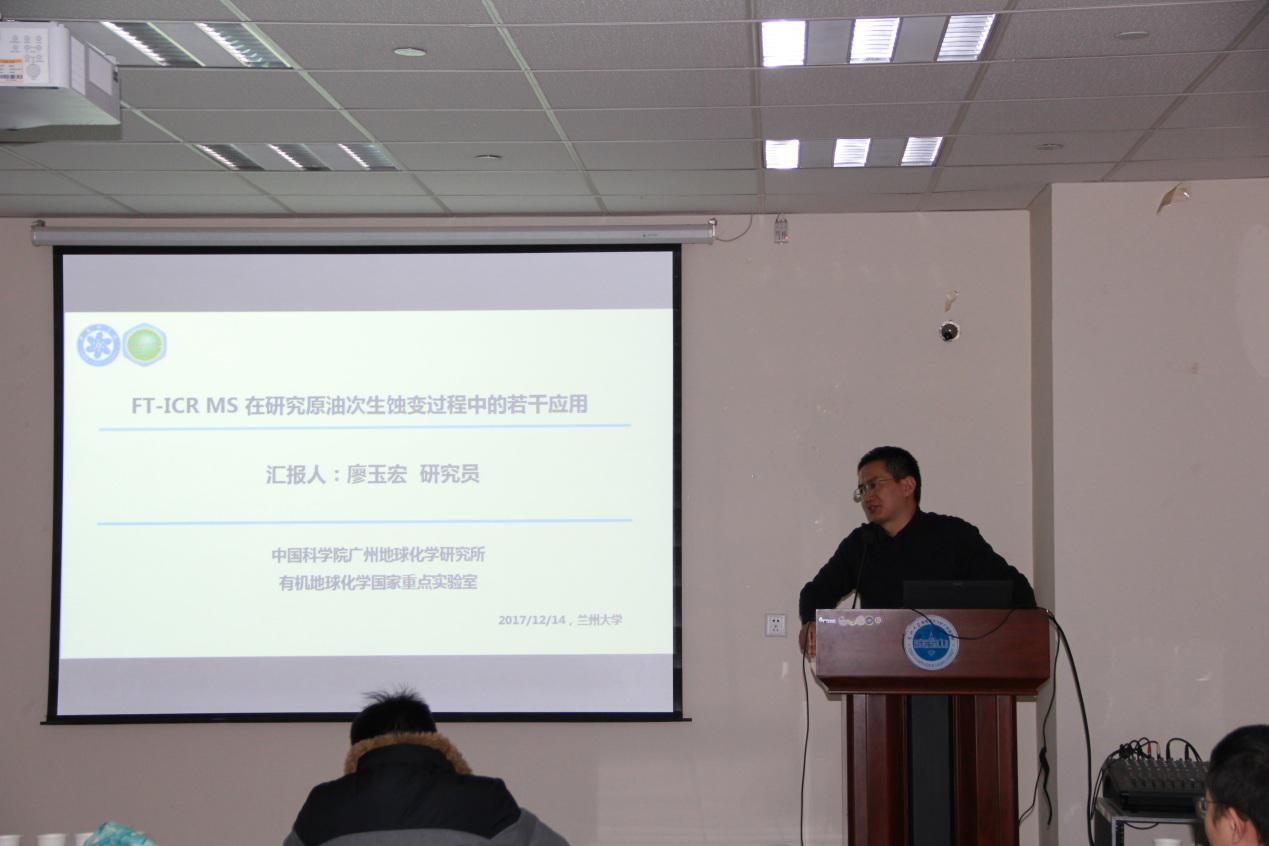 应地质科学与矿产资源学院王金荣院长和郭雪莲副教授邀请,中科院广州地球化学研究所有机地球化学国家重点实验室廖玉宏研究员来我校进行学术交流。