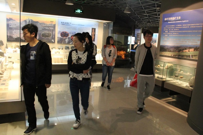 上午9时30分,地矿学院研究生会全体成员准时到达甘肃省地质博物馆。在完成登记、领取门票和地球日的宣传手册后,大家依次参观了地球厅、矿物岩石厅、宝玉石厅、生命演化厅、土地资源厅、地质环境厅、矿产资源厅、4D穹幕影厅和临时展厅等,地球厅主要展示地球在宇宙中的位置和地球的概况。矿物岩石厅采用雅俗共存、虚实呼应和寓教于乐的方式使同学们参与互动和欣赏展品。宝玉石厅主要介绍了宝石、玉石的特点和性质。生命演化厅通过展示各地质时期常见化石,概括介绍了地球上生物发生、演化和灭亡过程。土地资源和矿产资源厅介绍了甘肃省土地开发、矿产资源利用现状。地质环境厅主要介绍了甘肃的地质遗迹资源和地质灾害。在各展厅,同学们都逐一走访参观各个展台,生怕错过了珍贵的展物。尤其是在矿物岩石展厅,同学们对展出的岩石矿物一一观察、拍照。